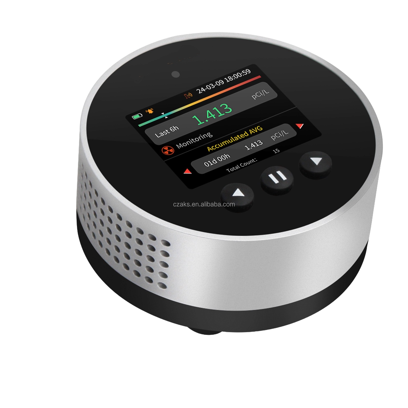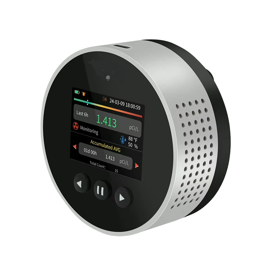 - Måleområde: 3.3 Bq/m³ - 37 kBq/m³ (0.09 - 1000 pCi/L)